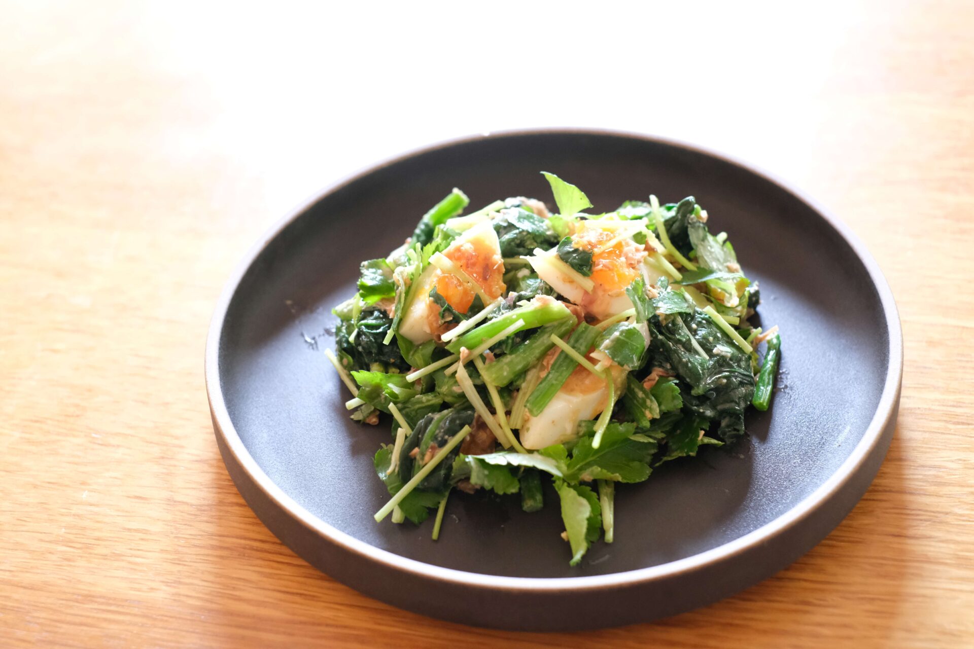 今日はほうれん草と三つ葉の卵サラダです。