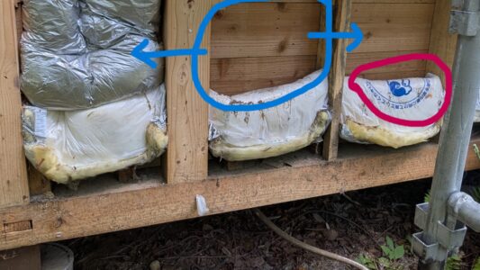 まず青丸ですがここの裏側は室内ですから断熱材はなかったんですね