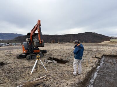 土を掘る際に調査員と一緒に行います。
