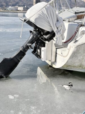 凍り付いたエンジンを撮ってたら目の前を鳥さんがテクテクかわいい